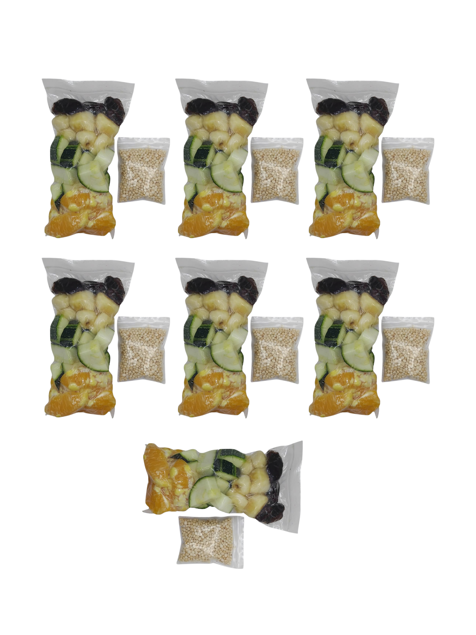 Cada pack contiene 7 porciones individuales para cada día de la semana.