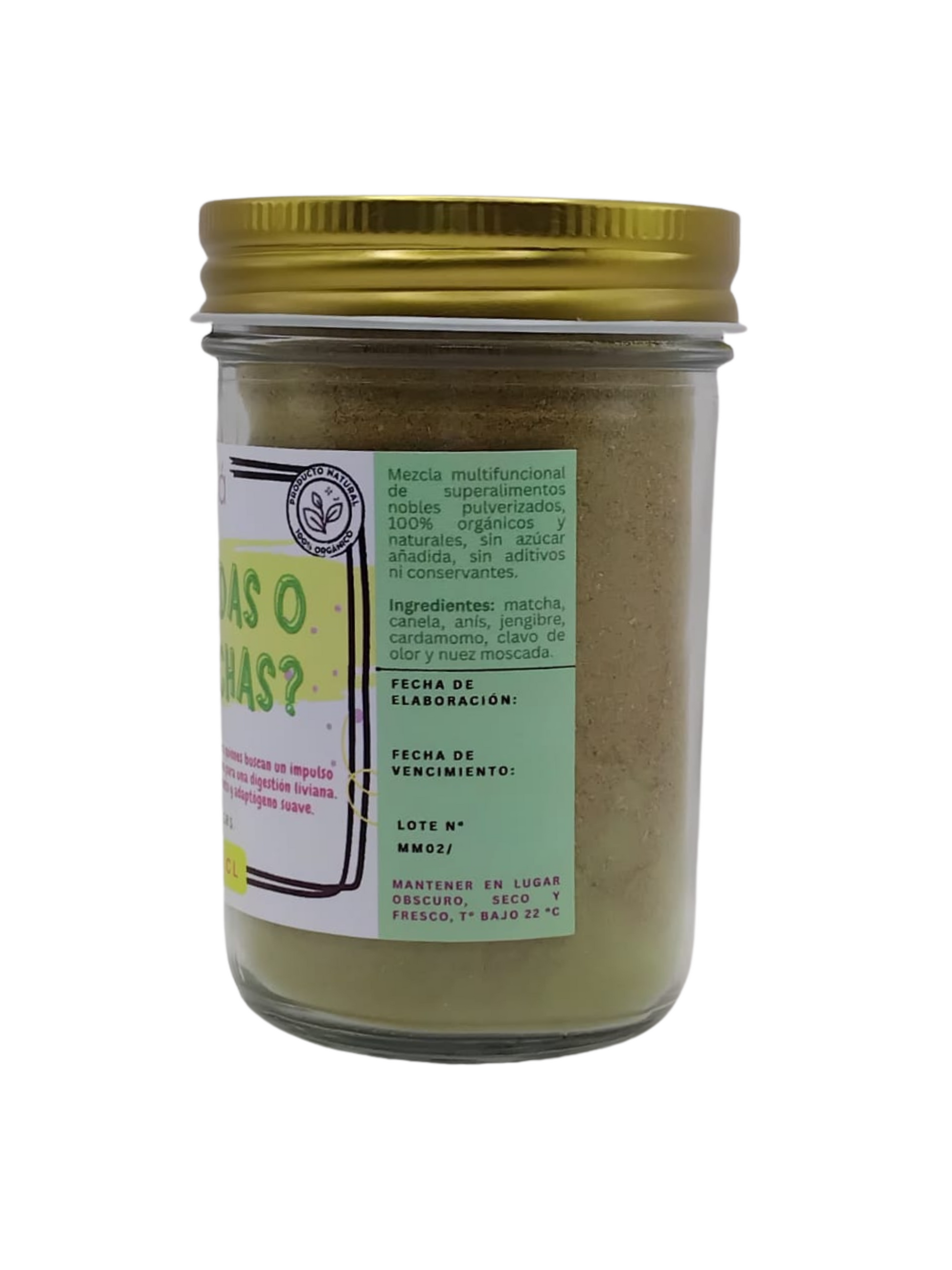 Para los amantes zen del matcha, hemos creado esta mezcla inspirada en los sabores de la india, más poderosa en cafeína que el café, con un power metabólico, digestivo y mental que luego de probar... No te querrás MATCHAR nunca de su lado.